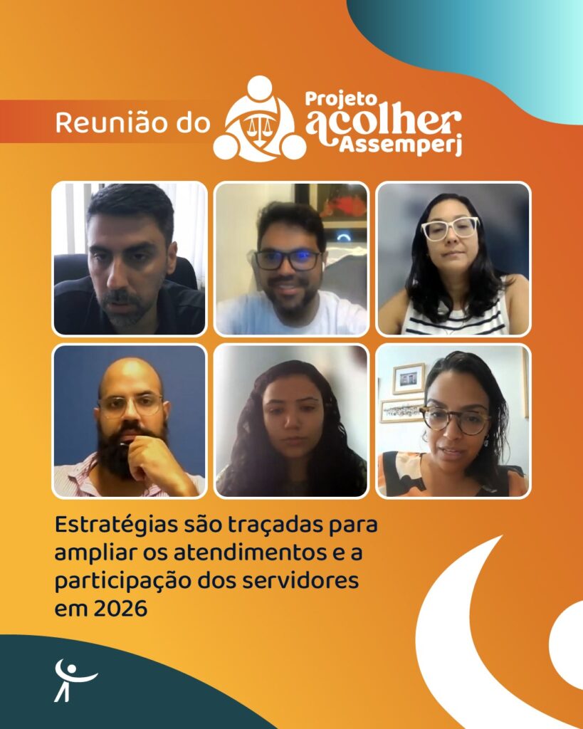 A reunião reforçou o compromisso da ASSEMPERJ e da equipe do Projeto Acolher com a promoção da saúde do trabalhador no MPRJ, valorizando a escuta qualificada, a produção de evidências e a construção de estratégias coletivas para prevenção do adoecimento e enfrentamento do assédio no ambiente institucional.